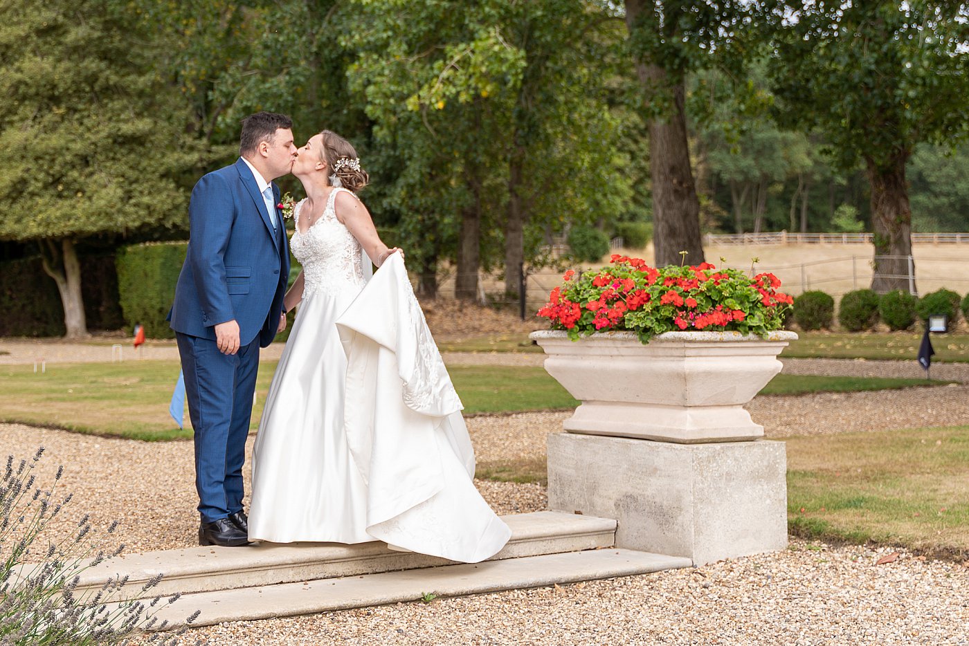 The most flattering time for couple portraits at Gosfield Hall is usually later in the afternoon or early evening, when the light softens around the gardens and house. I typically plan portraits in short, relaxed windows so you’re never away from your guests for long.